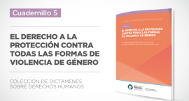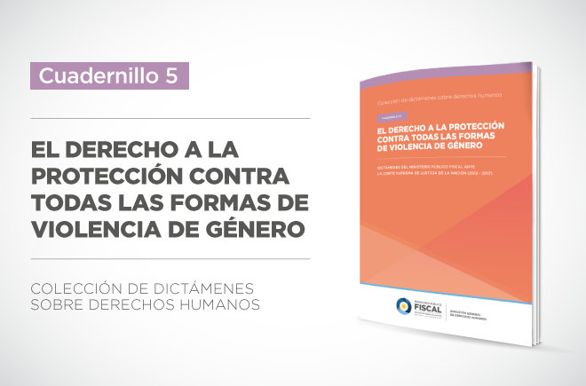 Este quinto cuadernillo compila diversos dictámenes en los que el Ministerio Público Fiscal se expidió sobre el alcance del derecho a la protección contra todas las formas de violencia de género. Reúne dictámenes ante la Corte Suprema de Justicia de la Nación en los que se desarrollan estándares sobre la obligación del Estado de prevenir, sancionar y erradicar la violencia contra las mujeres y contra el colectivo de personas lesbianas, gays, bisexuales, trans e intersex (LGBTI). Incluye precisiones sobre el deber estatal de actuar con la debida diligencia, así como también del deber de brindar una tutela judicial reforzada frente a la situación de violencia de género.