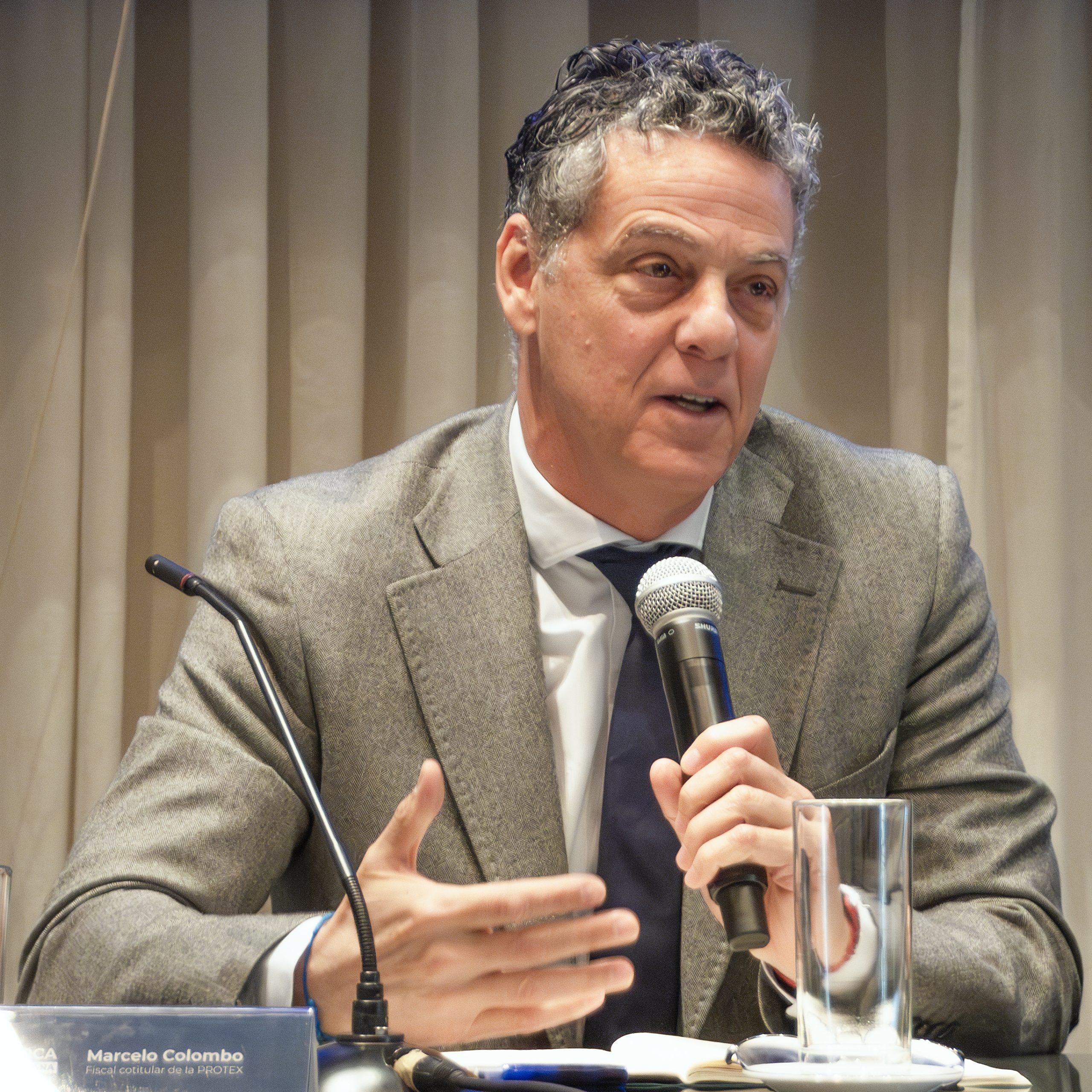 El fiscal general cotitular de la Procuraduría de Trata y Explotación de Personas (PROTEX), Dr. Marcelo Colombo, participó como expositor en la Jornada de Capacitación, Concientización y Sensibilización sobre la Trata de Personas, organizada por la División de Coordinación contra el Trabajo Ilegal de la Dirección General Impositiva (Agencia de Recaudación y Control Aduanero – ARCA).